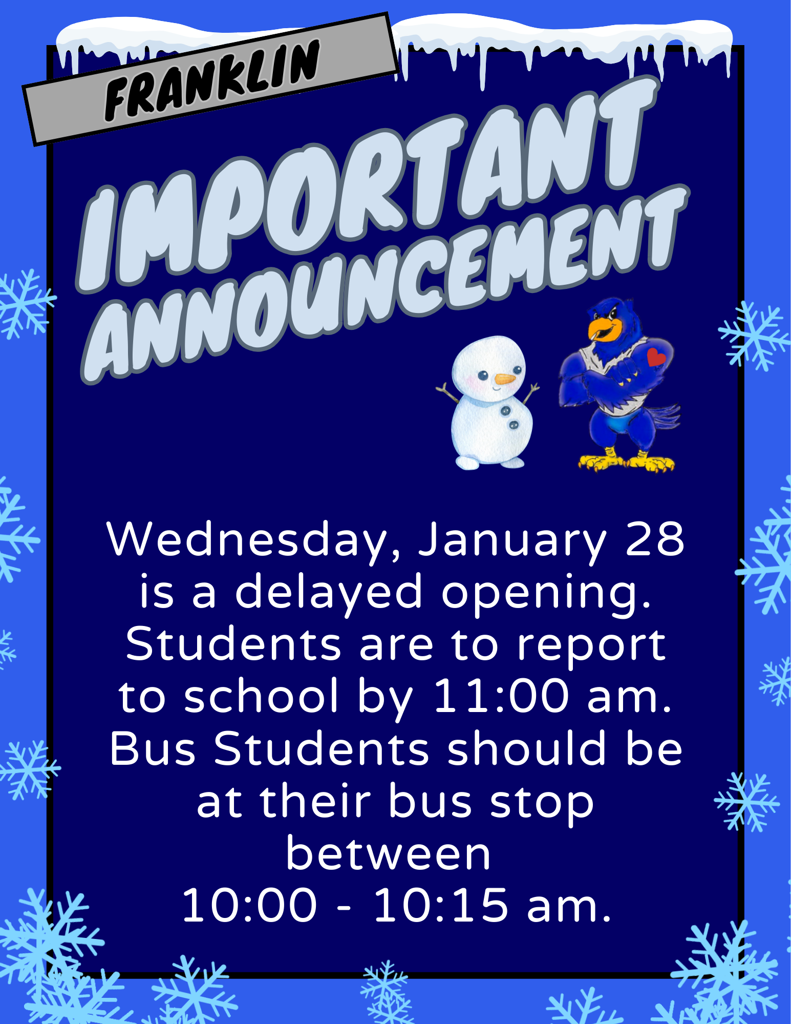 North Bergen Schools - January Announcement Please click the link to watch the video from Dr. Solter regarding the new year, honoring Martin Luther King Jr. Day, winter sports, and potential schedule changes in the event of inclement weather.